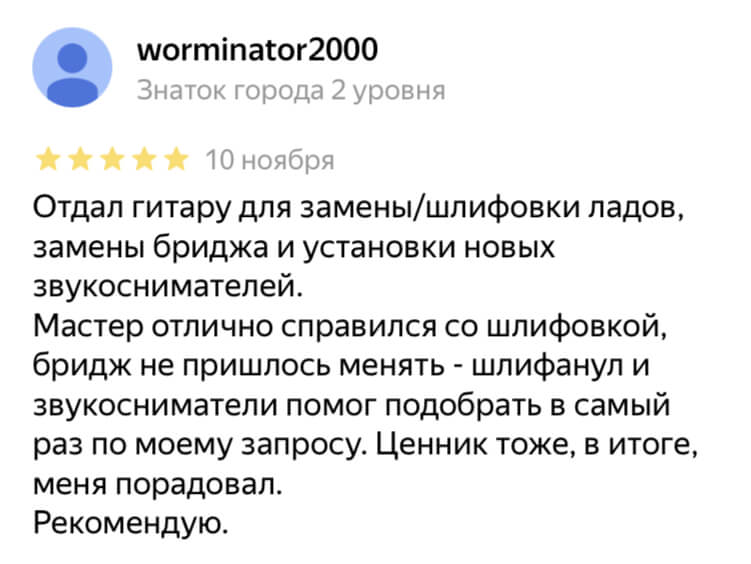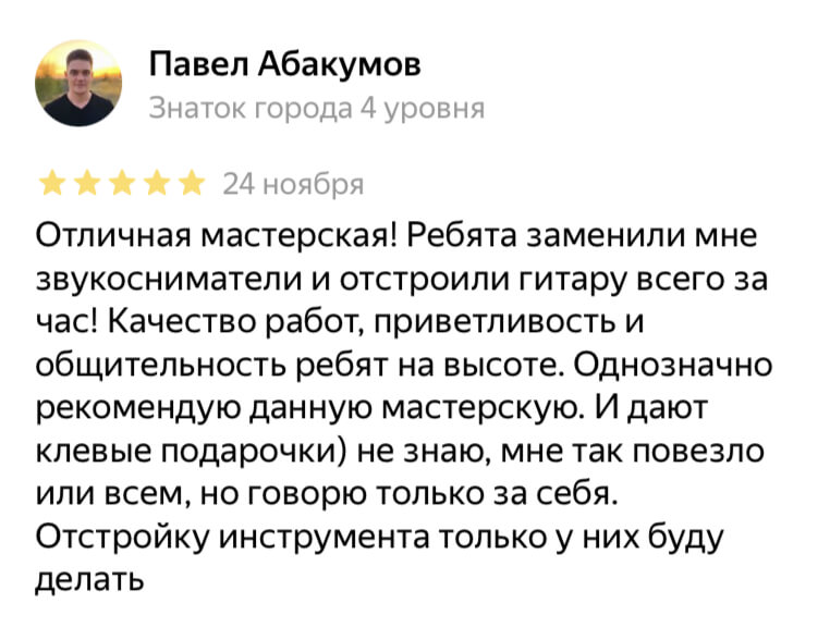 Привозим гитары под заказ, берем на себя поиск, переговоры с продавцом, таможенное оформление и доставку.